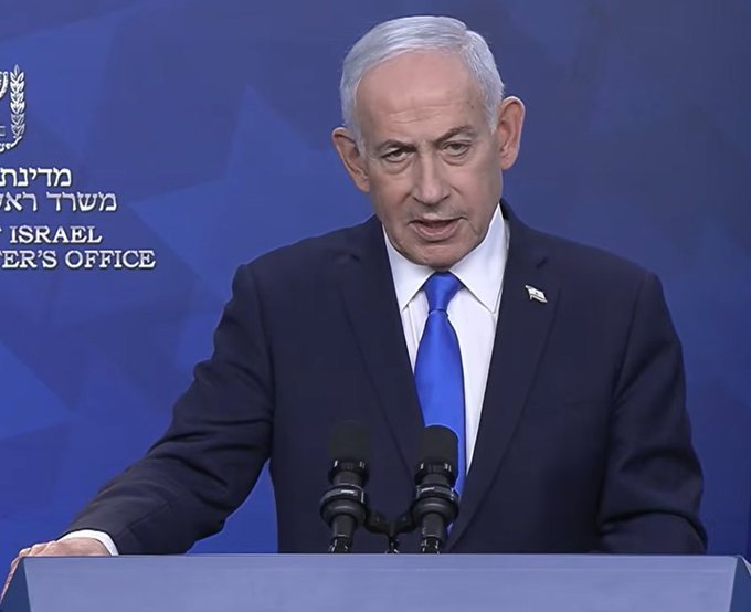 当地期间4月8日晚,以色列总理内塔尼亚胡发表视频声明。